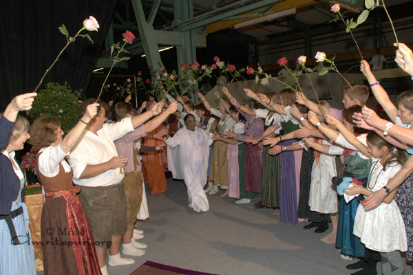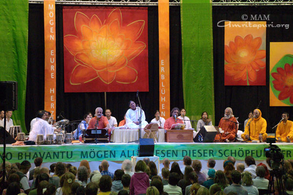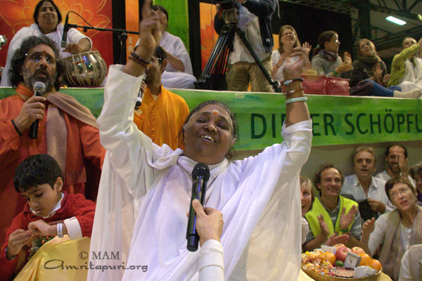 V Münchnu je bilo nekoliko manj ljudi kot v Milanu, zato je Amma prvi večer končala z daršanom že ob 11h in nato vzela mikrofon, kar ne stori prav pogostokrat ter vso dvorano spravila na noge s pesmijo Bandhalo, bandhalo (prihaja Mati, Boginja mojega srca).