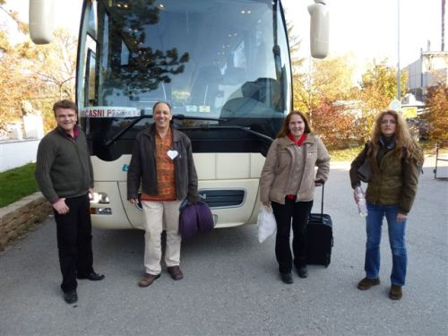Na Devi Bhava dan pa je prispel tudi naš avtobus s 44 potniki. V želji, da ne bi po nepotrebnem prezgodaj vstajali, smo določili malo pozen rok odhoda, tako da so prispeli v trenutku, ko se je že pričenjala jutranja meditacija in tako ni bilo več časa za dajanje navodil, vendar kljub vsemu ni bilo večjih težav. Popoldne se je nekaj Slovencev pridružilo skupini Madžarov in na odru so Ammi družno zapeli nekaj badžanov. V tem času smo organizatorji v zadnjem hipu prejeli še navodila za večerno pudžo in nekaj besedila dodanega v Ammin govor, tako da smo poleg vse ostale organizacije reševali še probleme okrog prevodov. Ta dan se nas je tako nabralo okrog 90 obiskovalcev iz Slovenije, k nam pa se je pridružilo še približno 40 Hrvatov in tako smo tudi mi pridobili pravico do prevoda na osrednjem platnu, kar seveda Madžarom ni bilo ravno všeč. A sta Bhavani in Br. Shubamrita našla rešitev – na osrednjih platnih smo bili oboji, angleški prevod pa so prestavili na stranski TV, na drugem TV pa je bil poljski prevod. Ko so ljudje že sedeli v dvorani, smo mi še sestavljali Powerpoint prevodov in iskali morebitne napake, ker so jih sestavljali ljudje, ki ne znajo Slovensko. Ko je Amma že prihajala na oder, smo ravno odpravili še zadnje probleme in bili nared za predvajanje. Amma je v zadnjem hipu dodala še kakšno zgodbo v svoj govor, in ker naš operater ni ravno doma v nemščini, je bilo zelo težko sledit spremembam, saj ni vedel, ali se je izgubil, ali pa je kaj dodano (nemški tekst je slišal prvič v danem trenutku), a se je z veliko mero Ammine pomoči – lahko rečem – zelo dobro izteklo. Led je bil prebit in tako lahko tudi v prihodnjih letih pričakujemo Slovenski prevod, če bo le dovolj obiskovalcev iz Slovenije, da si bomo prislužili pravico do njega.
