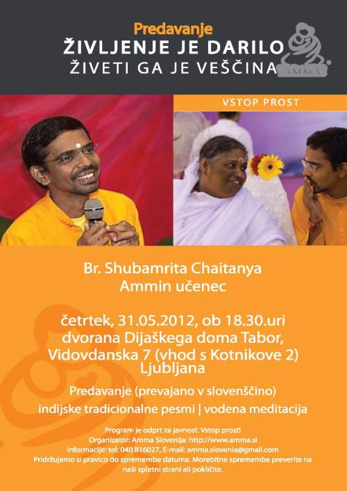 En dan prej pa bo imel Br. Shubamrita predavanje tudi v Zagrebu, na isto témo kot pri nas lani. Več: http://ammacroatia.org/