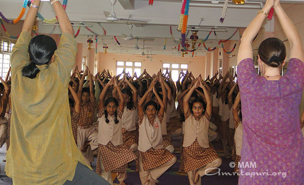 Amma že dolgo prikazuje svojo zavezanost k ohranjanju jogijske tradicije in omogoča, da postane joga dostopna vsem tako, da jo že leta učijo na njenih osnovnih in srednjih šolah ter na univerzitetni stopnji izobraževalnih ustanov (vsega skupaj več kot 100.000 študentov po vsej državi), kakor tudi na letnem taboru Gitamritam Bhagavad Gita in na rednih učnih urah Amrita Yoga v Amritapuriju in drugod.