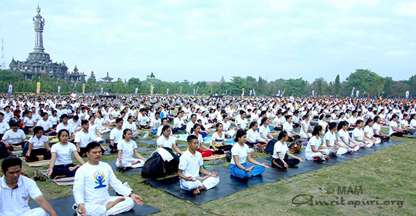 Na svetovni dan joge je Amma podelila svoj pogled o koristih joge {preberite: tukaj}, medtem ko je eden od njenih učencev vodil vse udeležence njenega programa v Ameriki, v Santa Fe-ju, s preprostimi jogijskimi vajami.