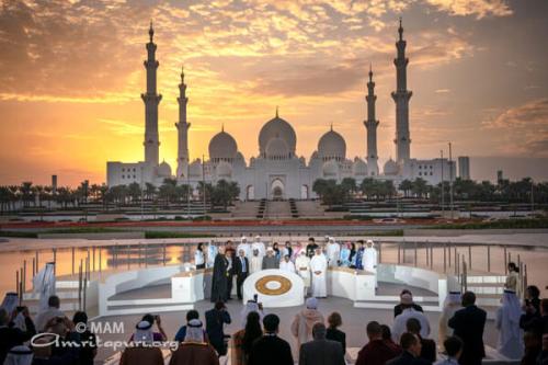 Faith Leaders Summit at Wahat Al Karama. Sheikh Zayed Grand Mosque in the background.