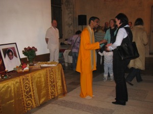 Po odmoru je sledilo petje indijskih duhovnih pesmi – badžanov, kratka meditacija in uživanje prasade, ki jo je ljudem razdelil Br. Shubamrita.