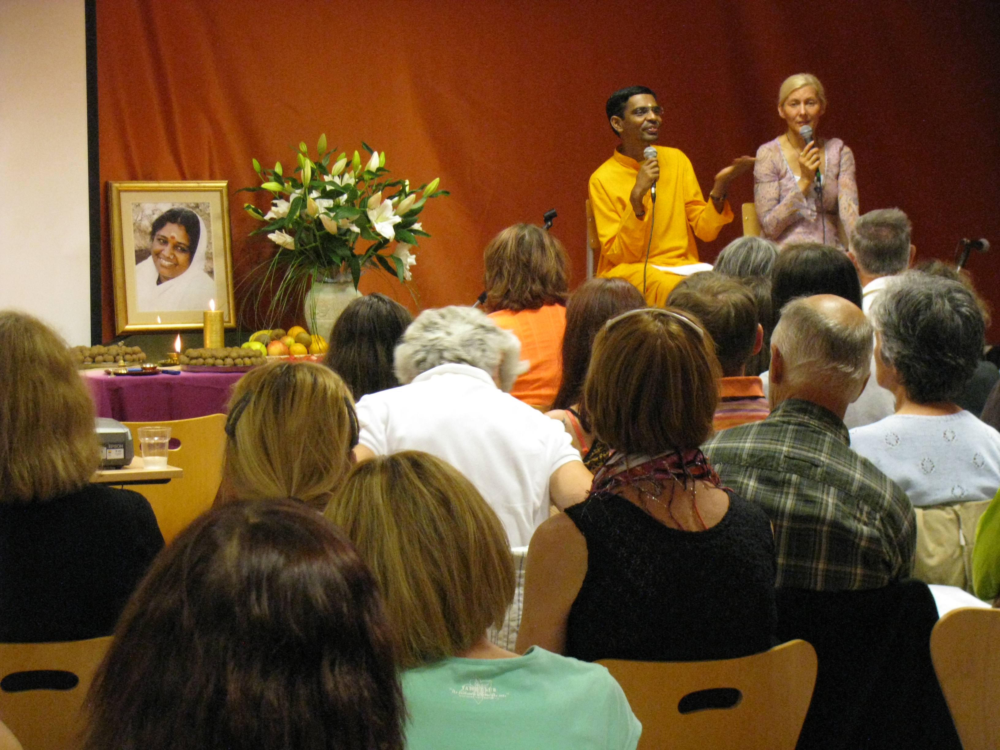 Predavanje Br. Shubamrite je bilo 8. junija 2010 na Biotehničnem centru v Ljubljani, na Ižanski 10. Začel se je okrog 19. ure in je trajal do 22. ure. Br. Shubamrita je govoril o tem, kako se soočiti s problemi v življenju. Predstavil je tudi Ammo, njeno delovanje in obiskovalce povabil, da jo v jeseni obiščejo osebno na njeni evropski turneji. Najbližje našim krajem bo prišla v Munchen, kamor bomo, če bo dovolj zanimanja, organizirali tudi avtobusni prevoz in Milano. Predavanje je sproti prevajala odlična prevajalka Branka Božič.