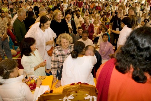 Ne glede na to, ali je Amma na turneji ali v svojem duhovnem centru v Indiji, večino časa počne eno in isto stvar – to je, sprejema vsakega posameznika in vse, ki se zbirajo v njeni bližini, z nežnim, toplim objemom, ki ga mnogi po vsem svetu opisujejo kot »Božanski«.